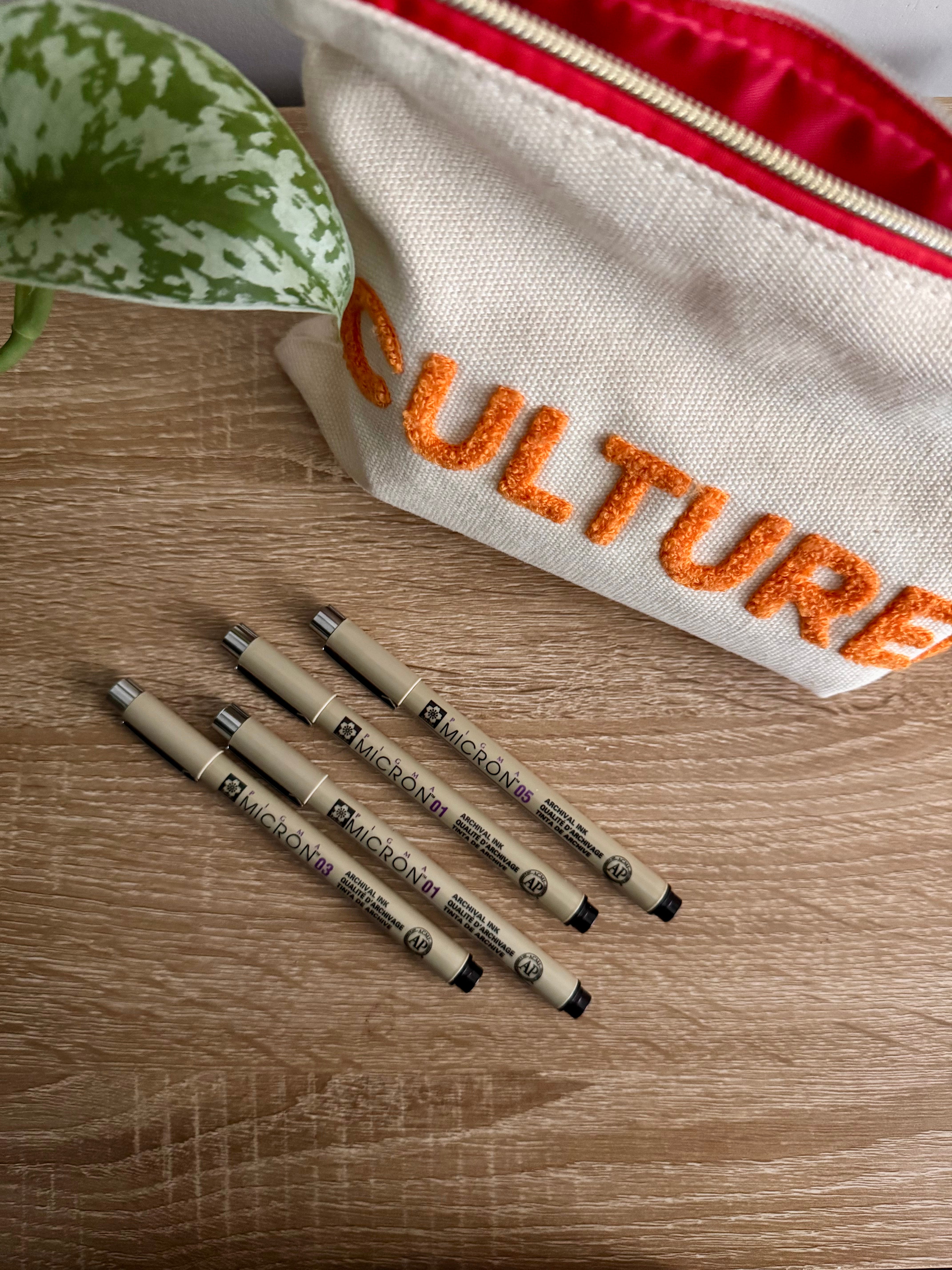 The SAKURA Pigma Micron Fineliner Pens is an excellent archival pen. I use them for crosshatching and adding shading to my drawings.