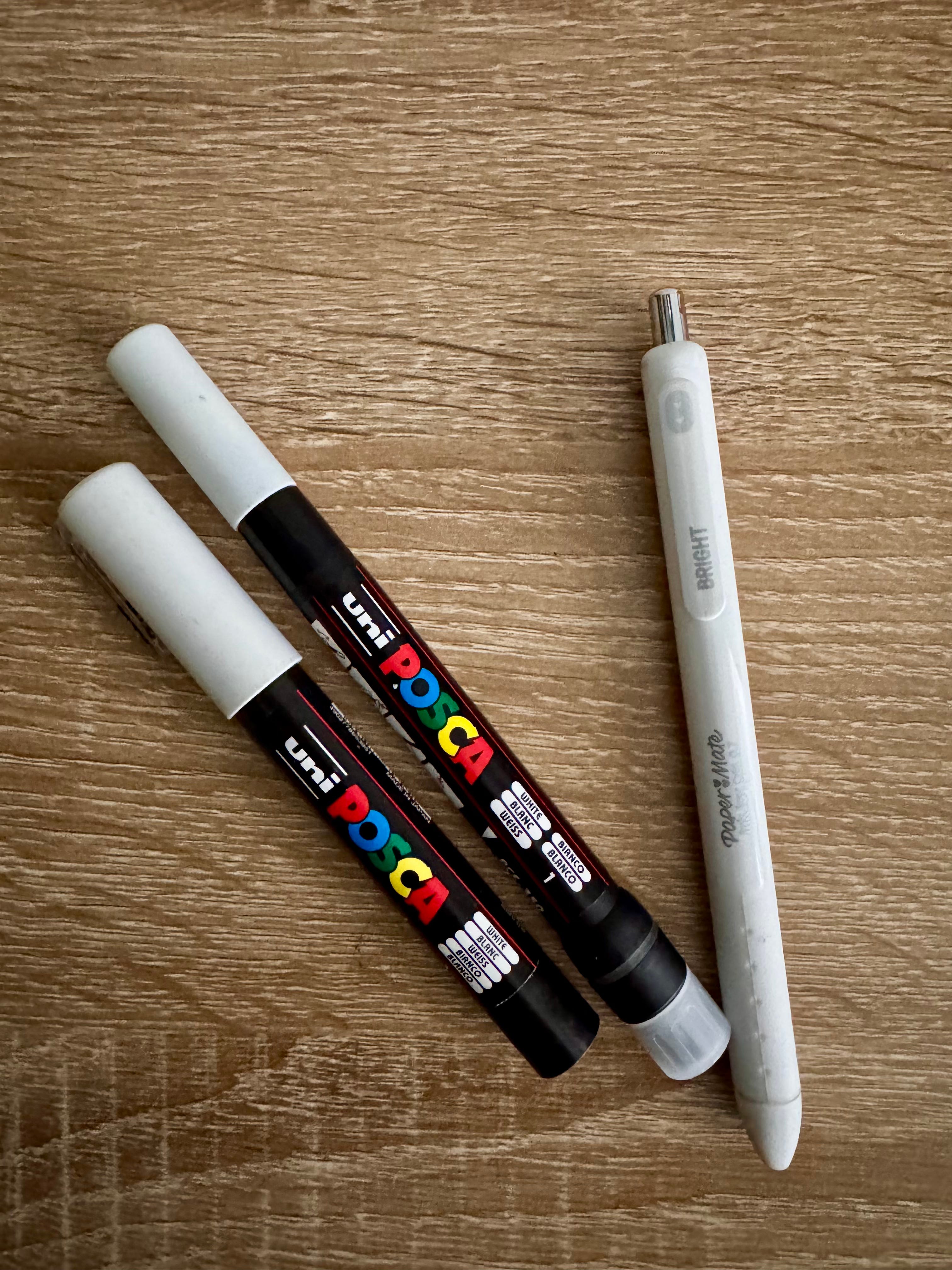 Add a few white pen options to your toolkit. They are perfect for adding highlights to your art and writing on photos. Posca is great, and so is Paper Mate Ink Joy.